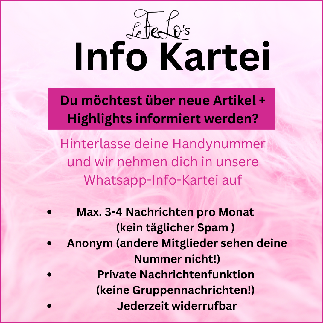 Wir versenden nach wie vor 3-4 Mal pro Monat gerne innerhalb unseres Whatsapp Broadcasters kurze Infos & Bilder zu Neuheiten, meldet euch hierfür einfach via Whatsapp an 0177 8090225.